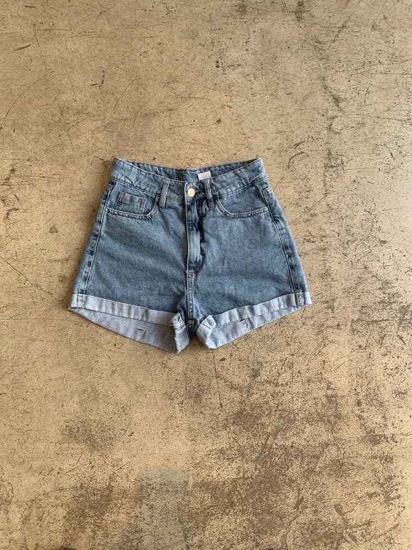 short tiro alto con dobladillo celeste
